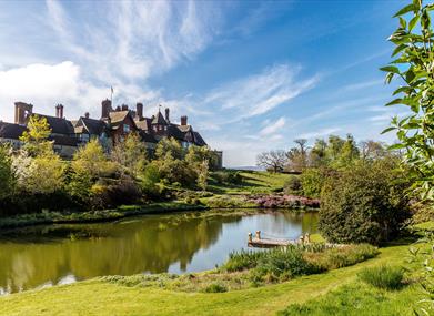 The house's 24 bedrooms – 22 en-suite doubles and two singles – are set across the first and second floor. Each offers views over the parkland, the South Downs landscape, or the romantic Tudor ruins of an earlier house. Double rooms feature a king or super-king bed, while all include robes and slippers to help you unwind. Whether you prefer wood panelling and a magnificent four-poster or the luxury of your own dressing room, you're sure to find a spot that feels like home.