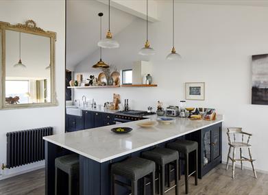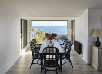 This design-led property has an upside-down layout, with bedrooms on the ground floor and a spacious open-plan living area on the first floor, to make the most of the breath-taking sea views.