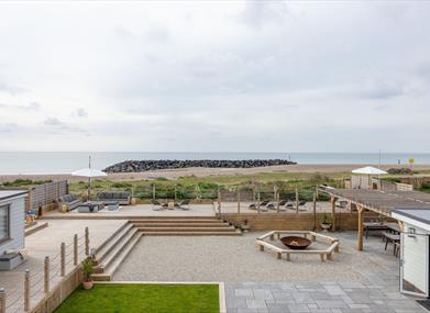 Inside, light floods a vast open-plan kitchen and dining room. Here, looking out to sea, you can recline on the sofas, stroll out to the deck, or sip drinks. There's an easy flow from house to garden that perfectly suits this setting – cook inside in the well-equipped kitchen, or when the sun shines, make use of the outdoor pizza ovens and barbecue.