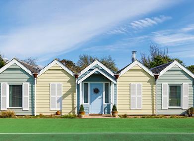 The Beach Huts is a one-level cco build self-catering property with an Instaworthy beach hut facade. Set on a farm in a the village of Oving, West Sussex.