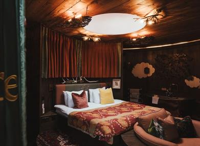 Dream a little dream in one of our curiously eccentric rooms. Choose from seven rooms over the pub, each with its own silver birch tree. Some have deep copper baths, all have sinfully comfortable double and king size beds.