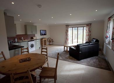 The Lodge at Spring Farm Alpacas is a completely self contained self catering holiday let. It is set in the middle of a working alpaca farm with all modern facilities. The Lodge has one bedroom with a king size bed adjacent to the walk in shower/toilet. There is a fully equipped kitchen/lounge area complete with single sofa bed, lazy-boy recliner, large flat screen TV and a Blu-ray/DVD player. There is excellent free wi-fi (30 Mbps) and a Bluetooth speaker in the bedroom. Tastefully decorated, fully double glazed and centrally heated, The Lodge is perfect for peace and tranquillity whilst maintaining every creature comfort. Oh, and you will be surrounded by alpacas and llamas!