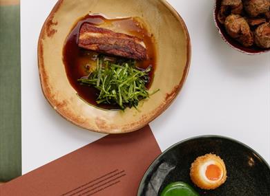 Nestled in the trees with panoramic views towards the Sussex coastline, 24 offers a small plates menu inspired by the surrounding landscape. Our menu showcases seasonal and foraged ingredients alongside organic produce from Goodwood's Home Farm - nourishing, delicious, and deeply connected to place.