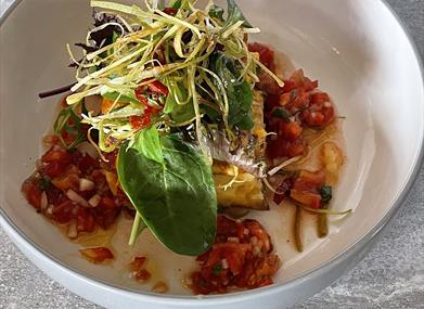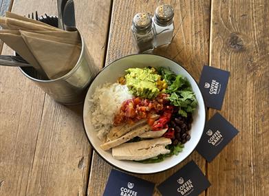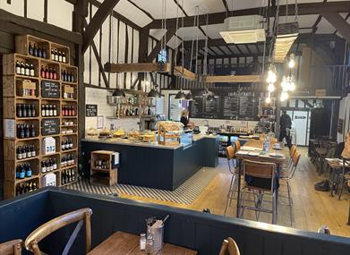 The barn is approximately 250 year's old, tasteful decor serving a varied breakfast menu from 8am till 12 noon our varied lunch menu is available from 12 till 3.30pm serving sandwiches, salads, toasties, skins, award winning sausage rolls in various delicious tastes, children's menu, something for vegans and gluten free. We also serve a special menu with something new every 2 weeks, a large menu of drinks including smoothies, milkshakes, tea coffee, soft drinks and wine or local beer from Longman and Harvey's. Outside seating at the back of the barn on our decking with covered space too for Dogs.