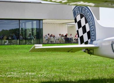 Enjoy beautiful views of the grass runway at Goodwood Aerodrome and the historic Motor Circuit - a unique spot to enjoy a cup of tea and a delicious lunch as Cessnas and Spitfires take off behind you.